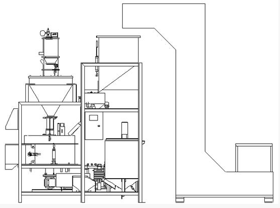 本套生產(chǎn)系統(tǒng)主要由自動裹衣機、給料提升機、真空上粉機等部分組成;其中自動裹衣機由裹衣系統(tǒng)、定量給料系統(tǒng)、定量供粉系統(tǒng)、定量供液系統(tǒng)和主機架等組成。