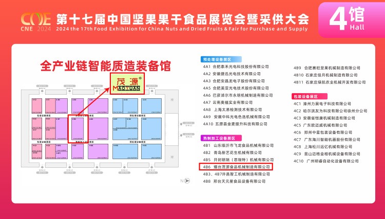 此次展會初次設(shè)立“全產(chǎn)業(yè)鏈智能質(zhì)造裝備館”,并將該館設(shè)在4號展館。全產(chǎn)業(yè)鏈智能質(zhì)造裝備館是本屆展會中代表堅(jiān)果果干行業(yè)裝備風(fēng)向標(biāo)的旗艦館,該館匯集了預(yù)處理設(shè)備、熟制加工設(shè)備、包裝設(shè)備三大展區(qū),覆蓋行業(yè)全產(chǎn)業(yè)鏈,全方位展示先進(jìn)技術(shù)、高端設(shè)備、智能系統(tǒng)、過硬質(zhì)量及應(yīng)用效果,為食品企業(yè)提供一站式裝備應(yīng)用解決方案。