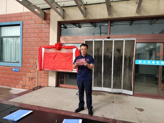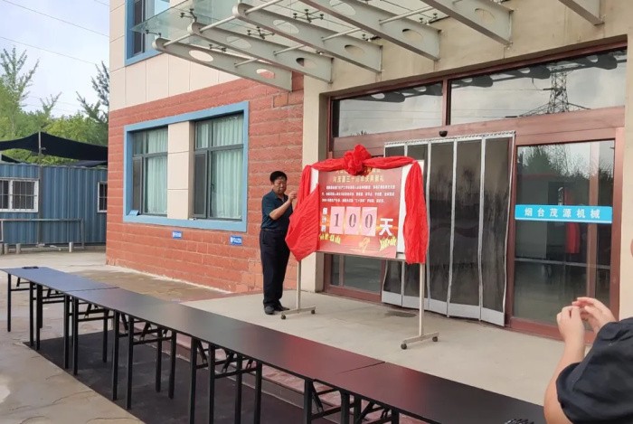 隨后,大會(huì)第四項(xiàng),董事長(zhǎng)姜篤華先生上臺(tái)講話,為全體茂源人帶來(lái)了激勵(lì)與期望。講話完畢,姜董進(jìn)行了 “大干 100 天,為茂源公司成立三十周年獻(xiàn)禮” 倒計(jì)時(shí)揭牌儀式,將大會(huì)推向高潮。
