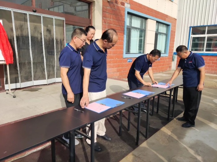 大會(huì)第三項(xiàng),技術(shù)部王總監(jiān)、銷售部姜經(jīng)理、制造部于經(jīng)理簽署軍令狀,他們將責(zé)任扛在肩上,以實(shí)際行動(dòng)為茂源的發(fā)展全力以赴。簽完后,三位領(lǐng)導(dǎo)將軍令狀置于胸前,留下了莊重的一刻。