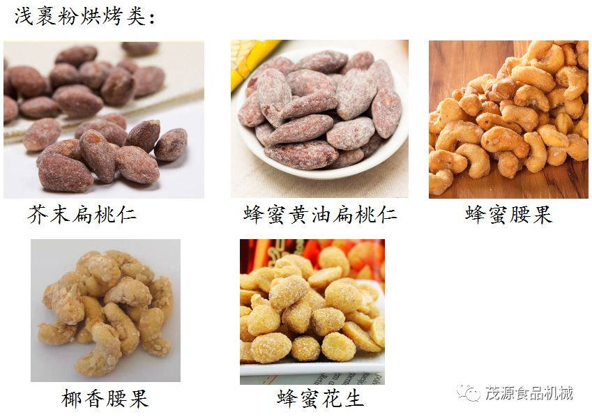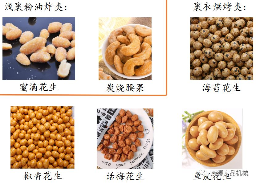 裹衣/裹粉類產(chǎn)品是近年來(lái)較為熱銷的產(chǎn)品之一。通過(guò)糖漿向物料表面沾粘面粉+糕粉+變性淀粉+其他特色配料,來(lái)改變或賦予原有堅(jiān)果/籽類所不具備的形狀/風(fēng)味。