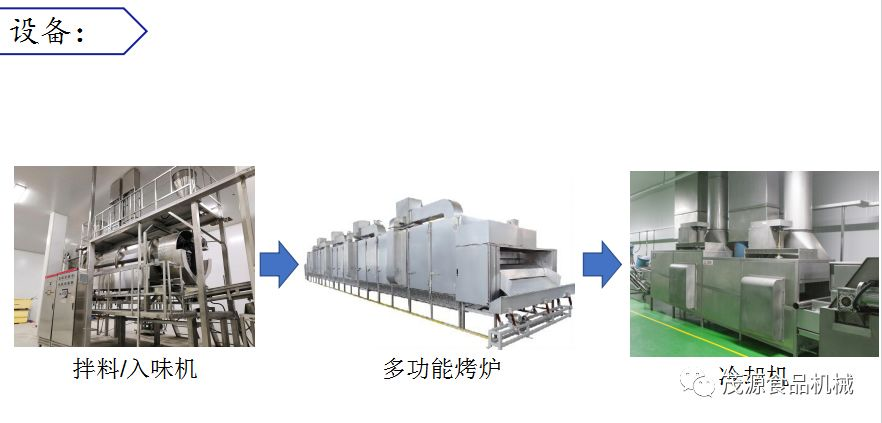 簡(jiǎn)易型:原料→裹衣→烘烤→拌料→烘干→冷卻→包裝