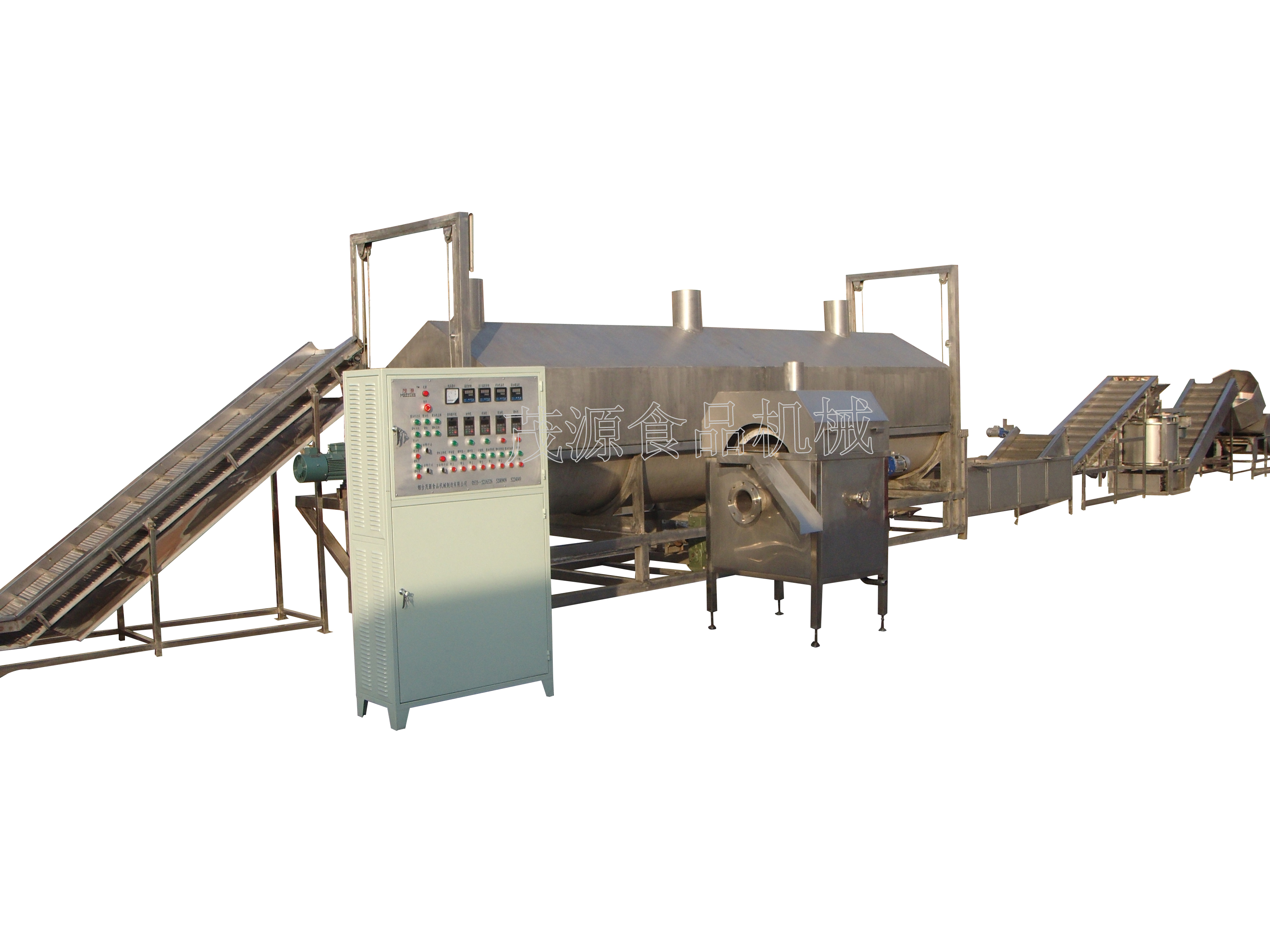 煙臺茂源食品機械制造有限公司制造的全自動連續(xù)油炸生產(chǎn)線選用進口不銹鋼精制而成,潔凈美觀,利用導(dǎo)熱油加熱。